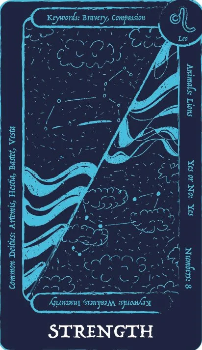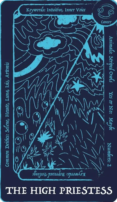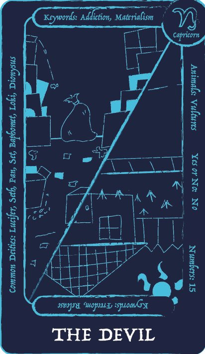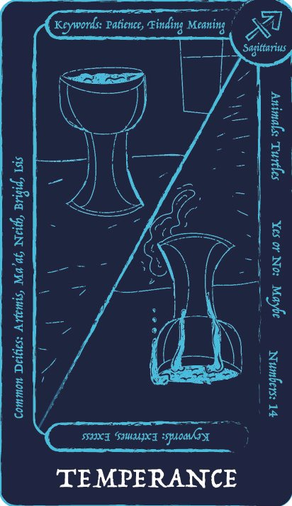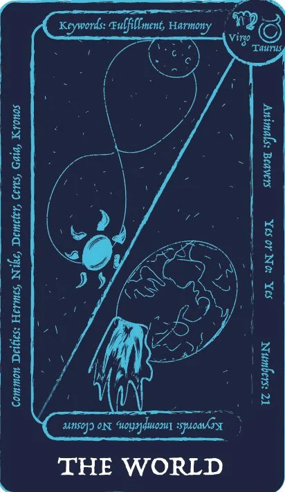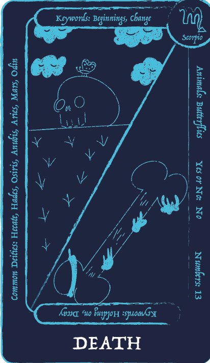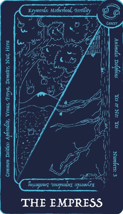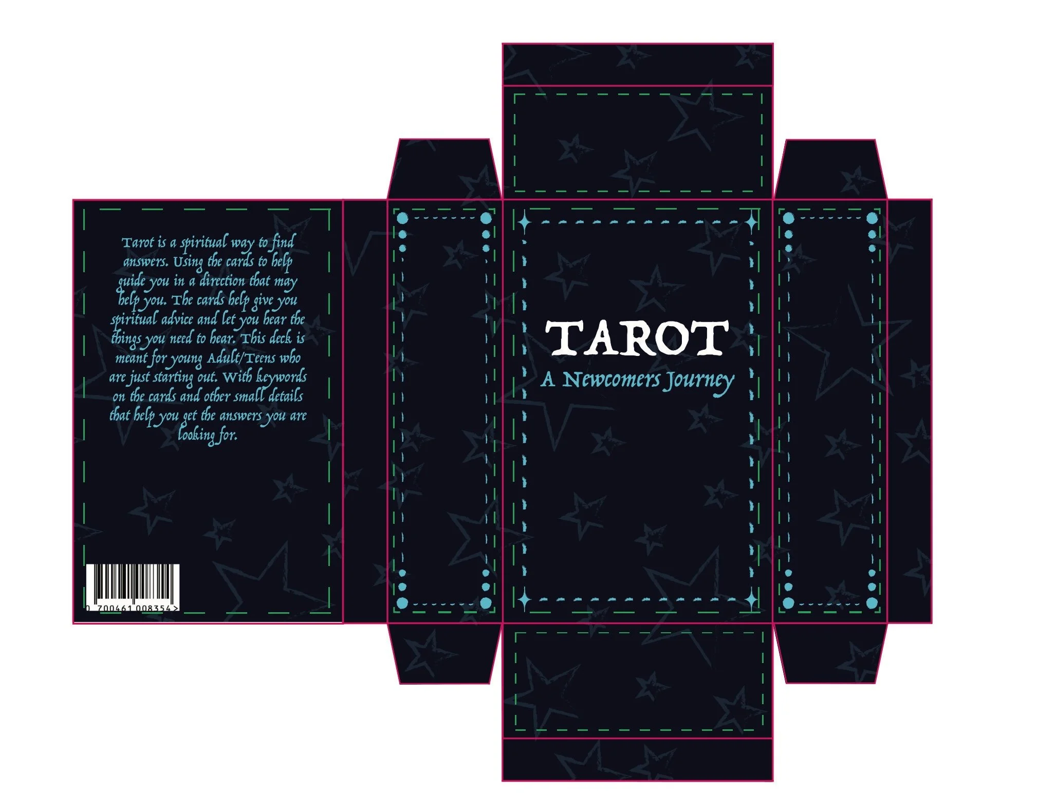 This capstone project is a tarot deck that is meant for teens/college students who are looking to get into tarot or are frustrated with the typical studying route that is mostly used when starting tarot. Trying to start tarot with little to no prior knowledge of tarot can lead most to get frustrated because of the overwhelming amount of understanding that is needed to do a tarot reading. This deck uses images to convey meaning, just like regular tarot, but this deck has additional information on the cards themselves, so you learn while doing readings instead of having to study. The additional information on the cards covers keywords for the negative and positive meanings of the cards, common deities from multiple religions associated with the card, whether the card means yes or no, numbers associated with the card, any animal associated with the card, and what zodiac sign is related to the card. There are 72 cards in a tarot deck. The first 22 cards in the deck are called the major arcana; they each have in-depth meanings and tell their own story. The other cards fall into four sections: the wands, the cups, the swords, and the pentacles. This deck also comes with four extra cards that go into a more in depth explination on the sections in case the person needs help understanding how these sections tie into their reading to give them a more accurate explanation.