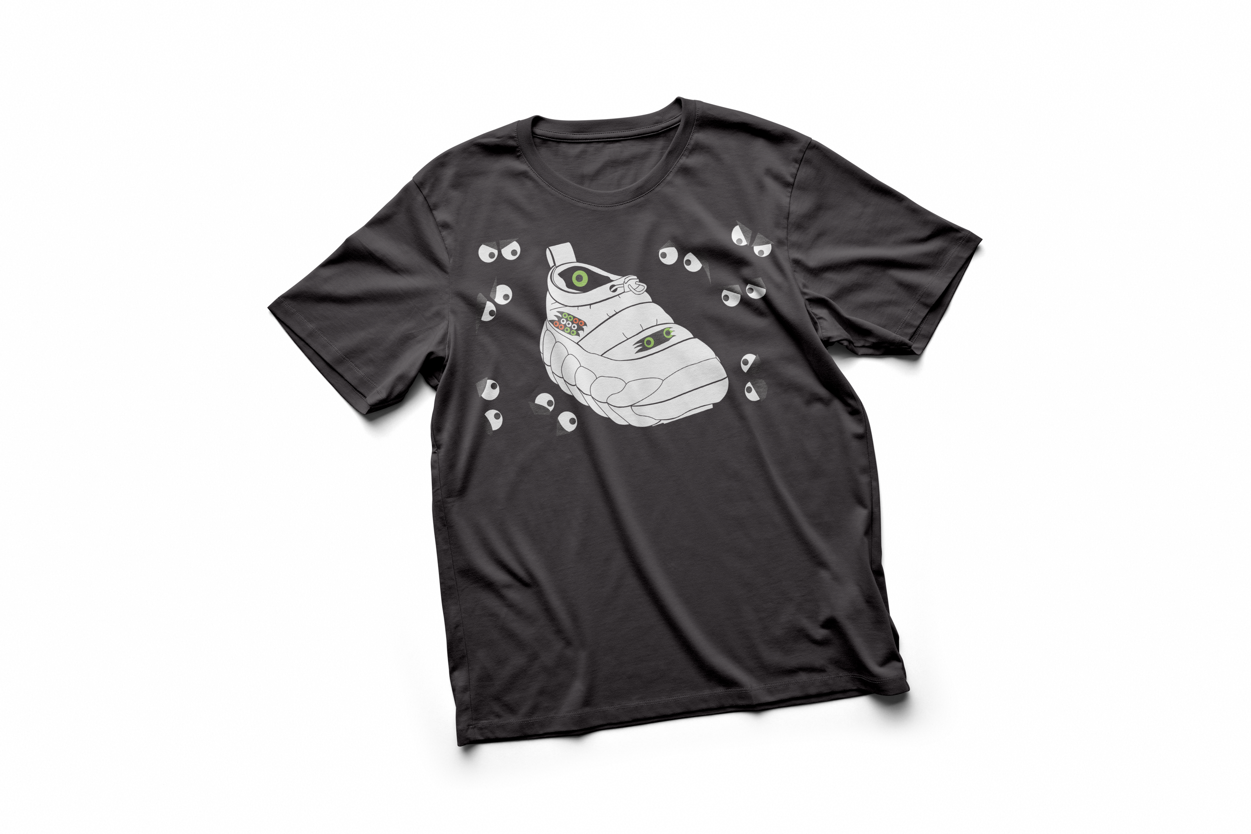 This Project required turning a Crocs shoe into a Halloween shirt. The shoe the design is based on is the Overpuff Shorty. My idea for this design was to do a mummy style because of the puffiness of the shoe and to make it look like eye are peaking through the wrapping of the shoe.